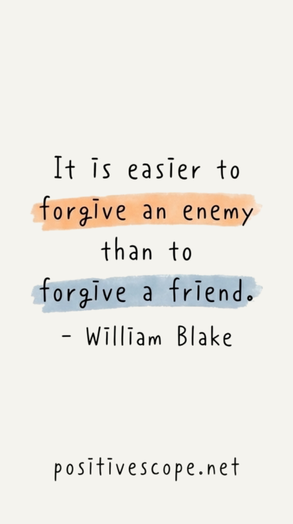 “It is easier to forgive an enemy than to forgive a friend.” – William Blake