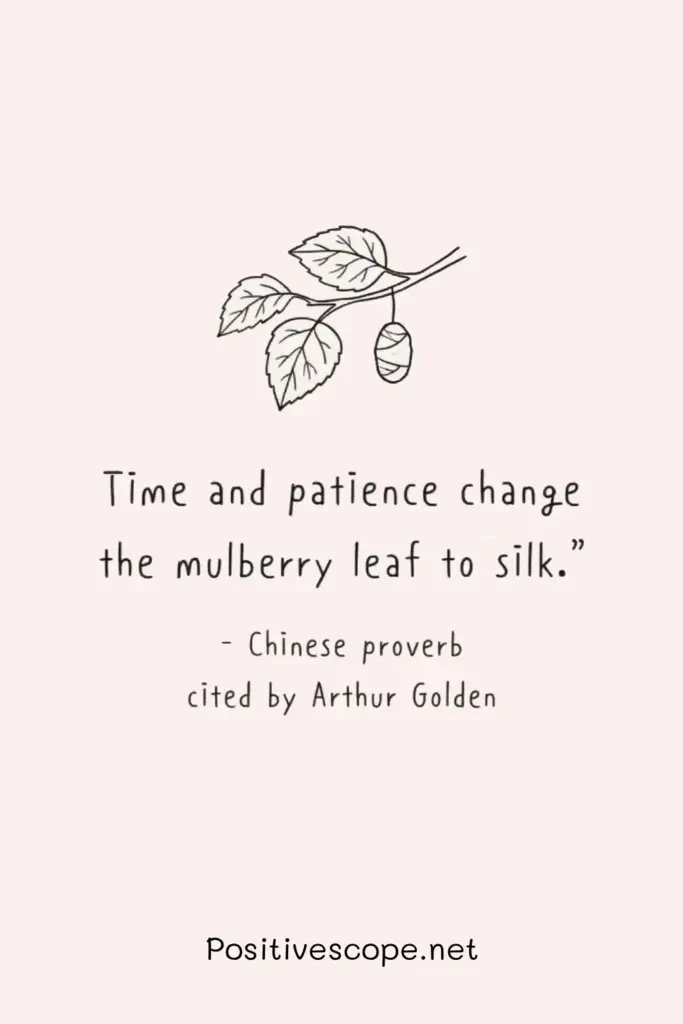 “Time and patience change the mulberry leaf to silk.” – Chinese proverb cited by Arthur Golden