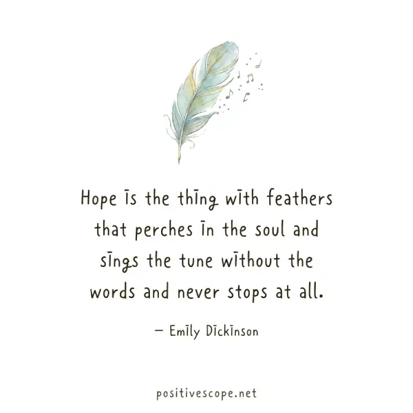 “Hope is the thing with feathers that perches in the soul and sings the tune without the words and never stops at all.”— Emily Dickinson