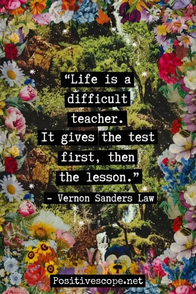 “Life is a difficult teacher. It gives the test first, then the lesson.” – Vernon Sanders Law