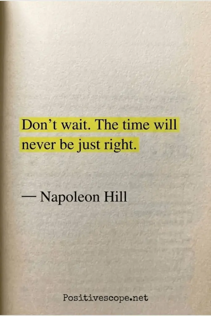 “Don’t wait. The time will never be just right.” — Napoleon Hill