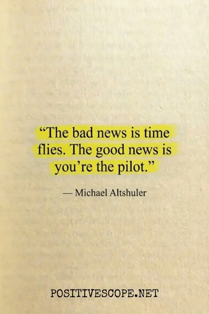 “The bad news is time flies. The good news is you’re the pilot.” — Michael Altshuler