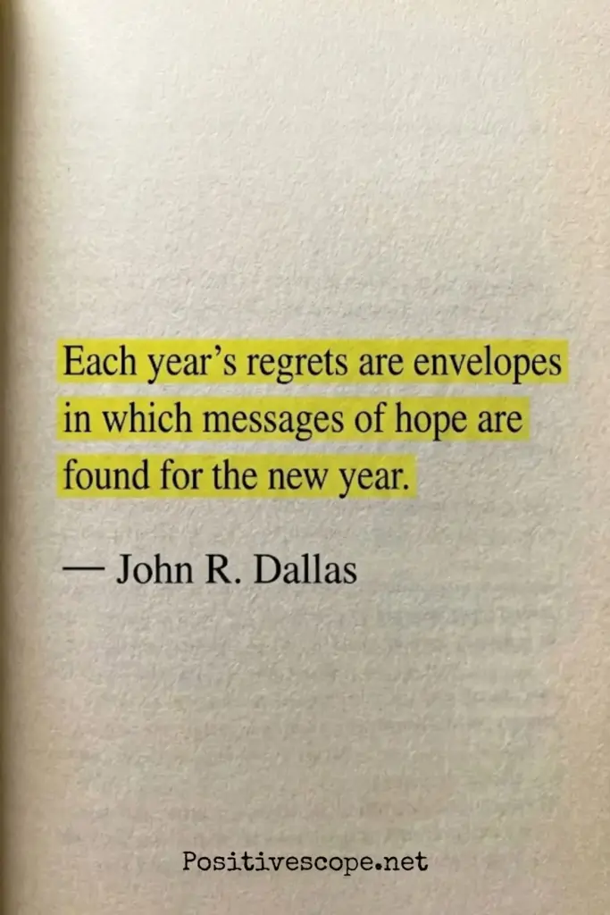 “Each year’s regrets are envelopes in which messages of hope are found for the new year.” — John R. Dallas