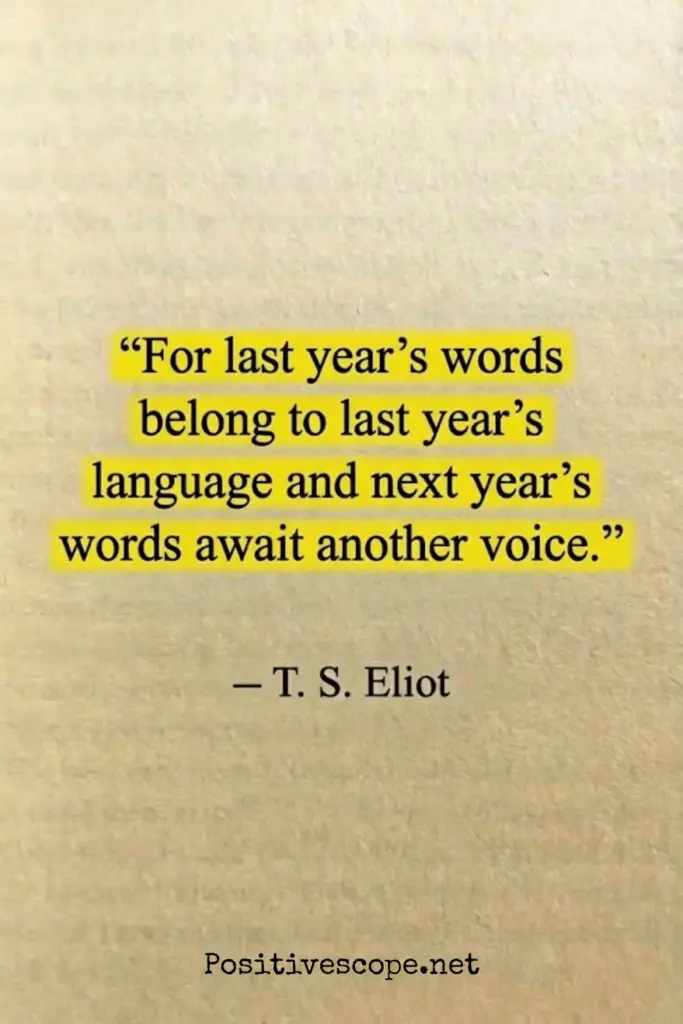 “For last year’s words belong to last year’s language and next year’s words await another voice.” — T. S. Eliot
