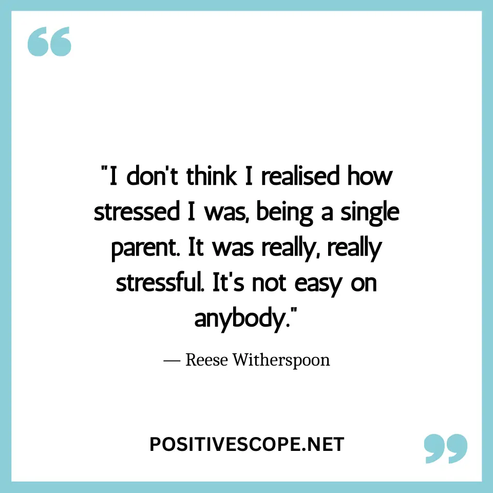 “I don’t think I realised how stressed I was, being a single parent. It was really, really stressful. It’s not easy on anybody.” – Reese Witherspoon