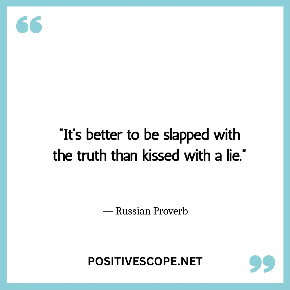 “It’s better to be slapped with the truth than kissed with a lie.” — Russian Proverb